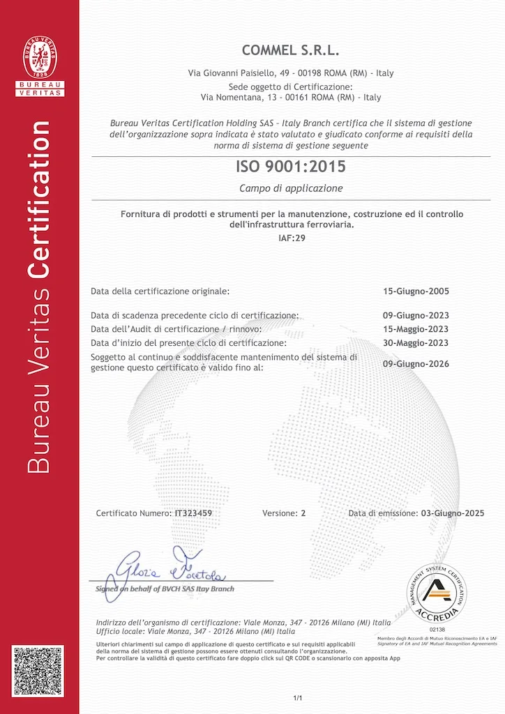La Commel opera nel settore della Fornitura di Prodotti e Servizi per la Manutenzione, la Costruzione e la diagnostica del binario e degli apparecchi del binario; attraverso l’adozione di un Sistema di Gestione